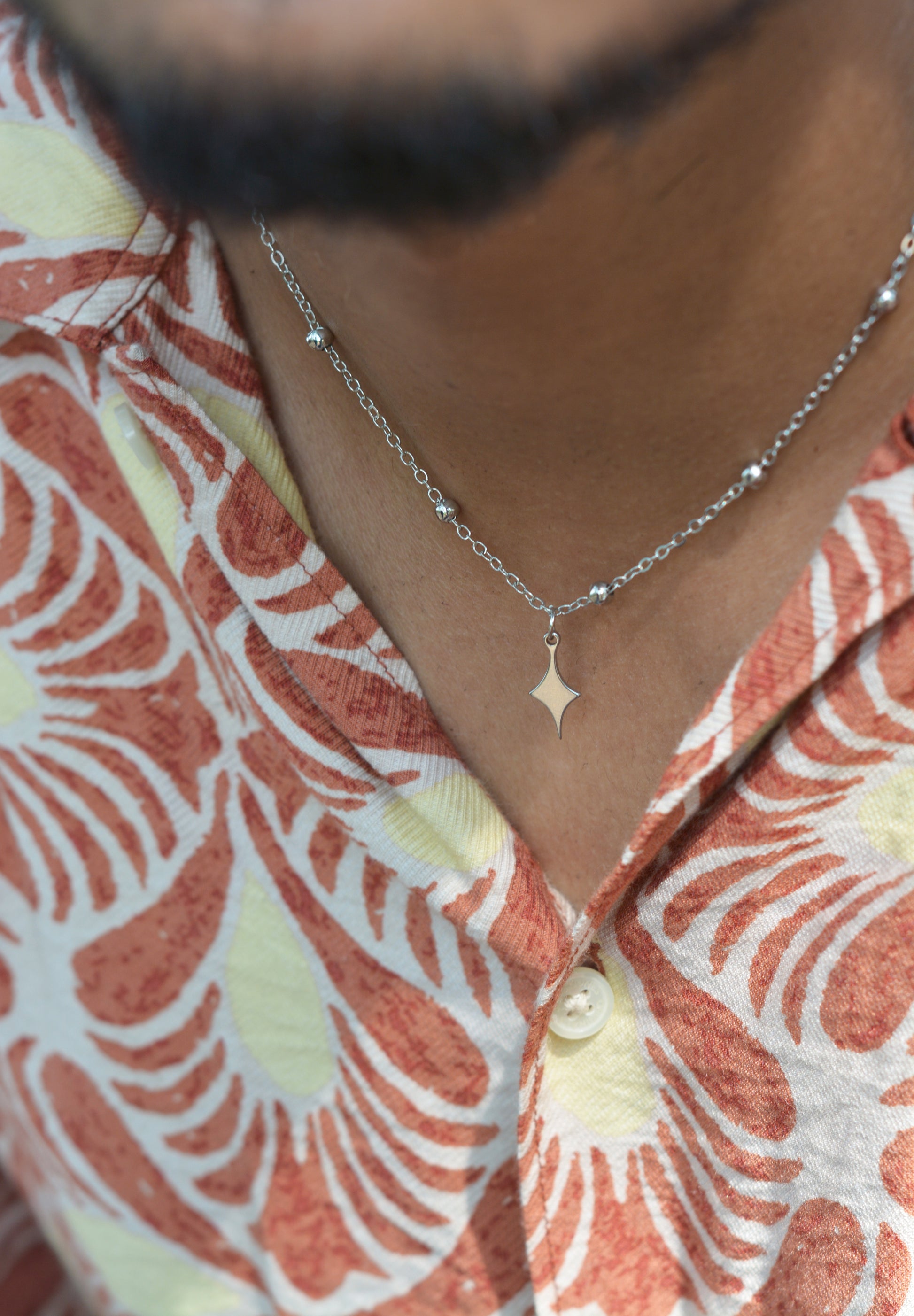 Embrace the night’s allure with our ‘Celestial Charm Necklace.’ A delicate silver chain culminates in a radiant star pendant, capturing the enigmatic beauty of a starlit sky. Let this elegant piece be your guiding star to effortless style.