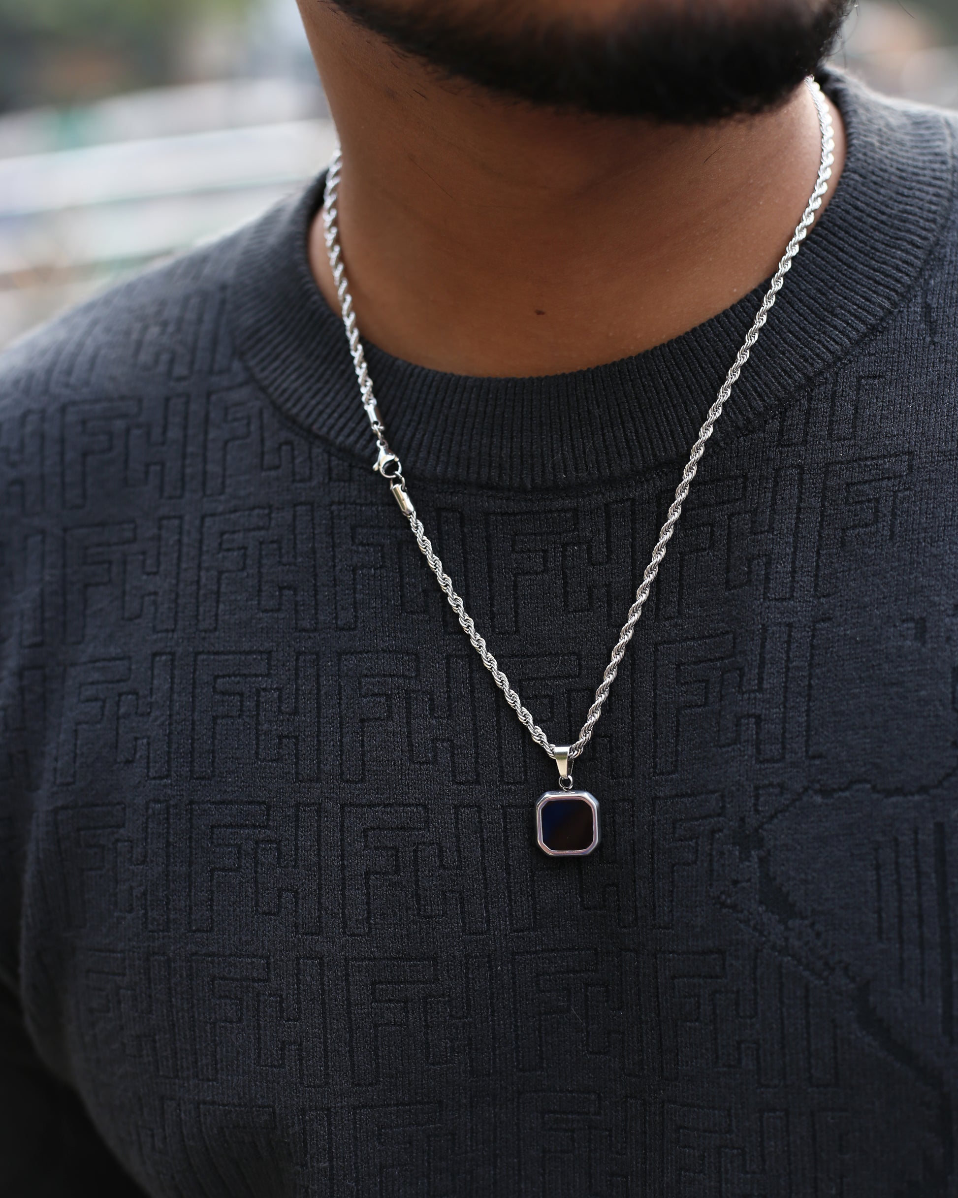 The Delta Pendant necklace for men is a stunning piece of jewelry that will add a touch of elegance and sophistication to any outfit. This square-shaped necklace is made from the finest materials and craftsmanship.
