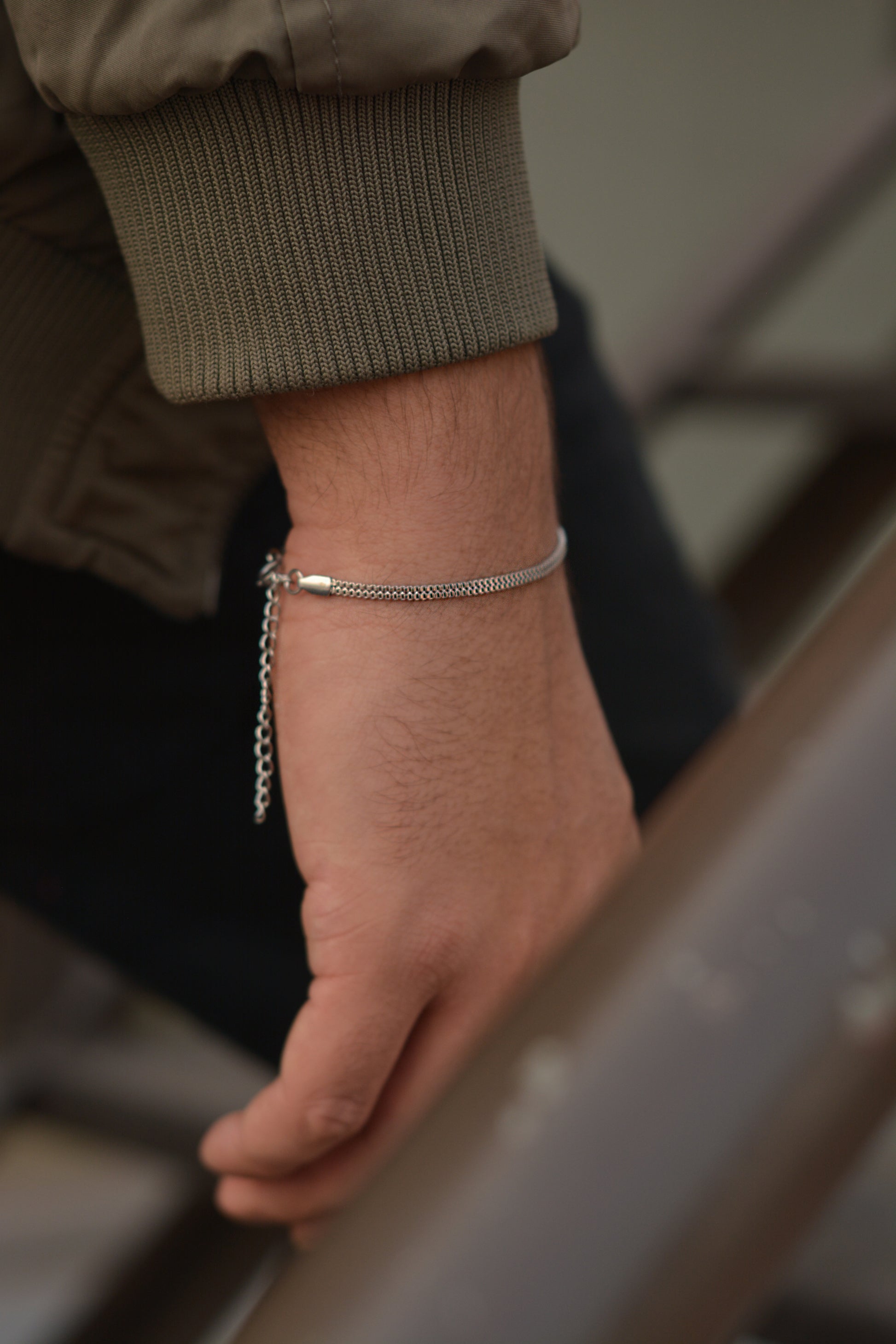 Adorn your wrist with this sleek and stylish Silver Double Box chain bracelet. This bracelet is adjustable. This delicate piece is a must-have accessory.