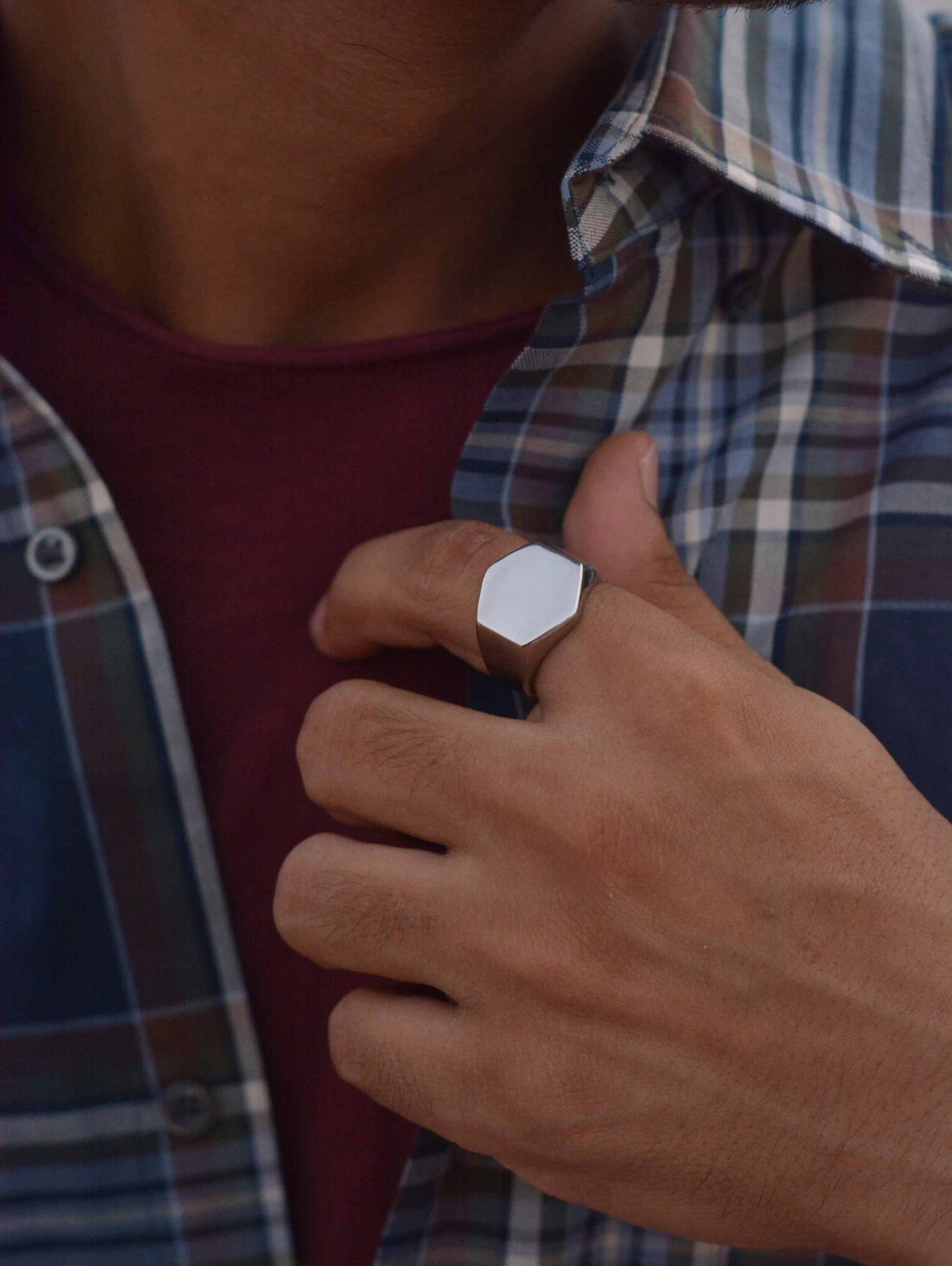 Silver Hexagonal Signet Ring is a must-have for any ring lover or future collector. Both classic and modern, this ring is the perfect everyday ring.