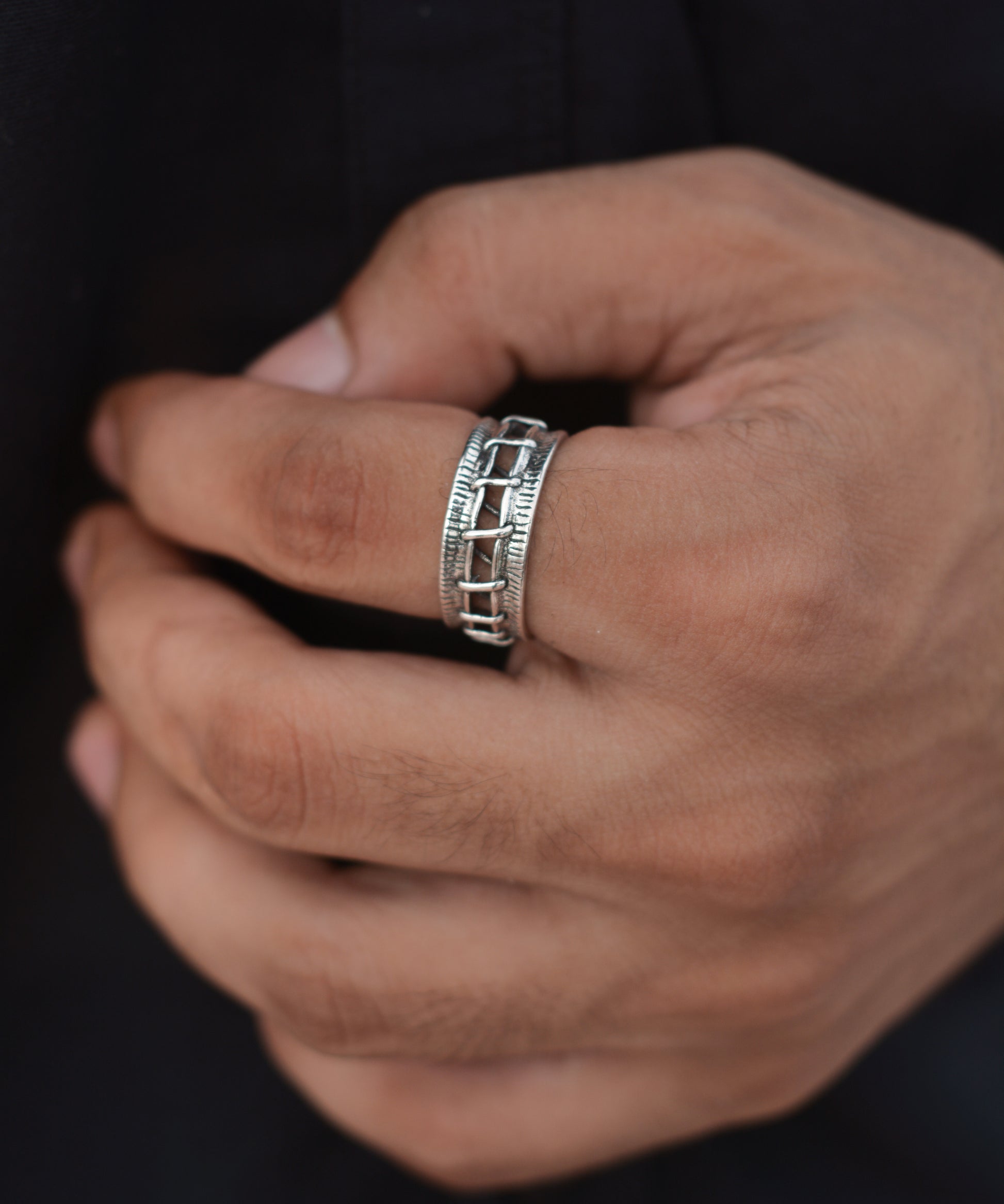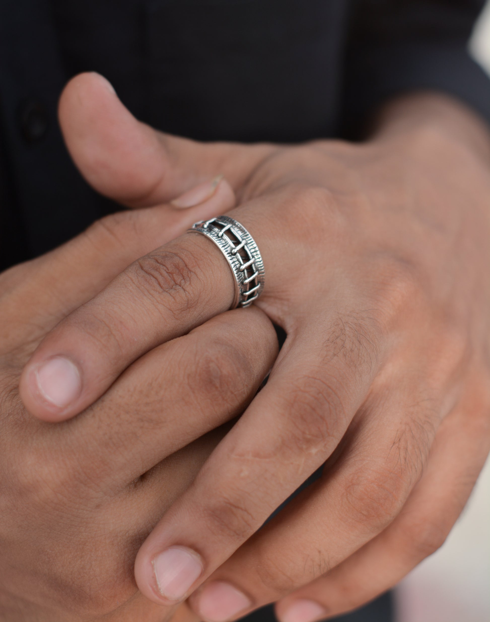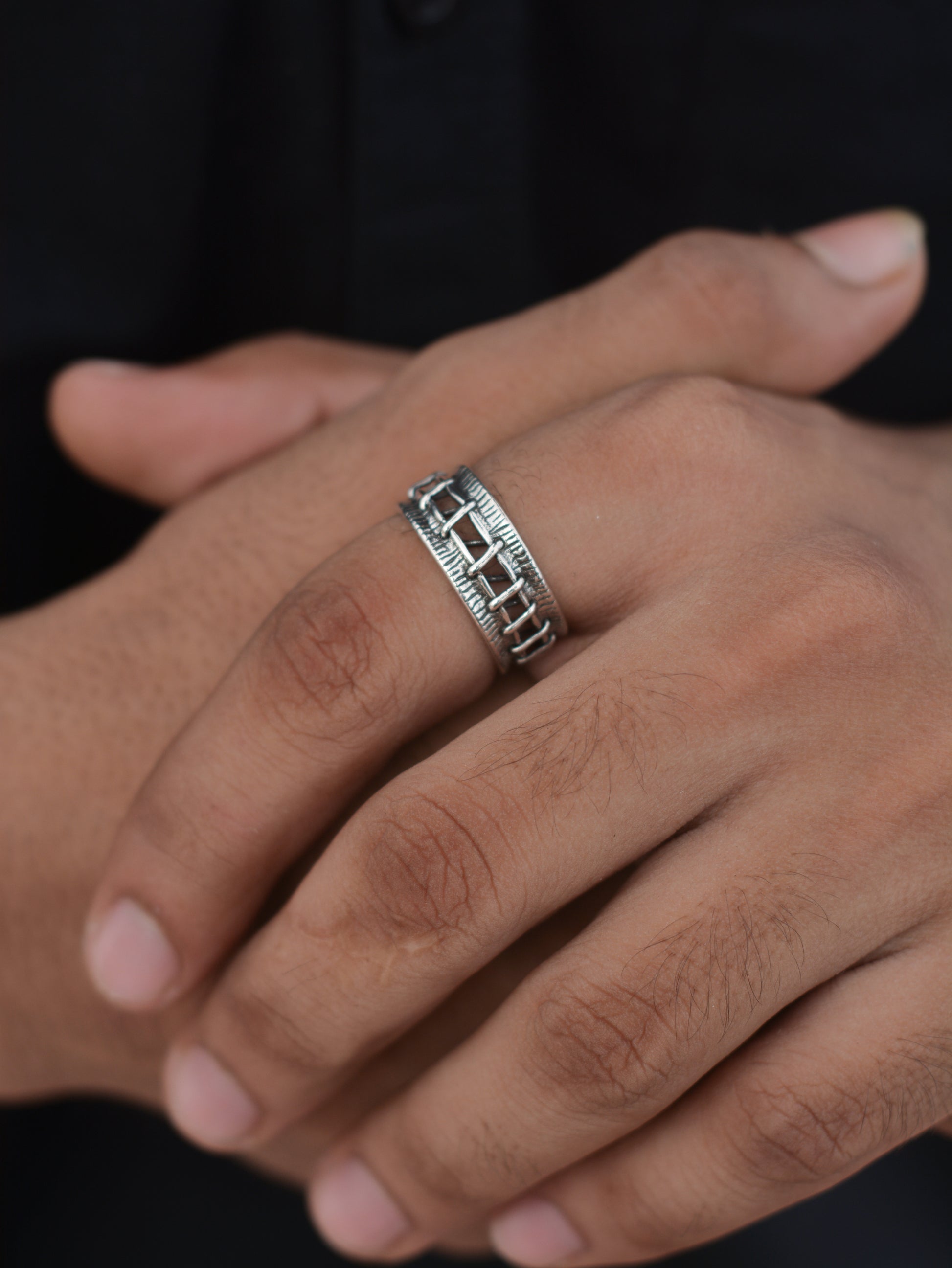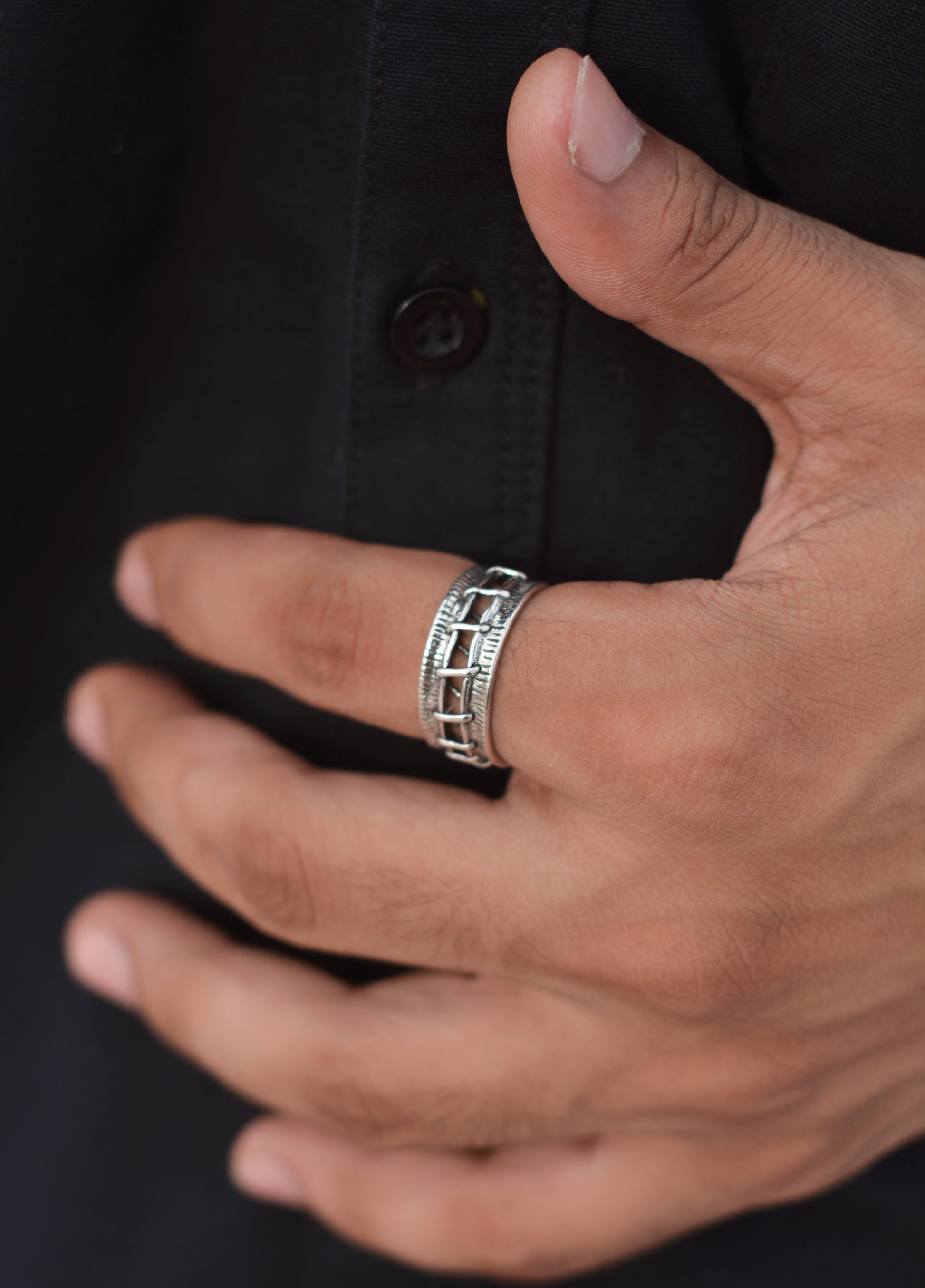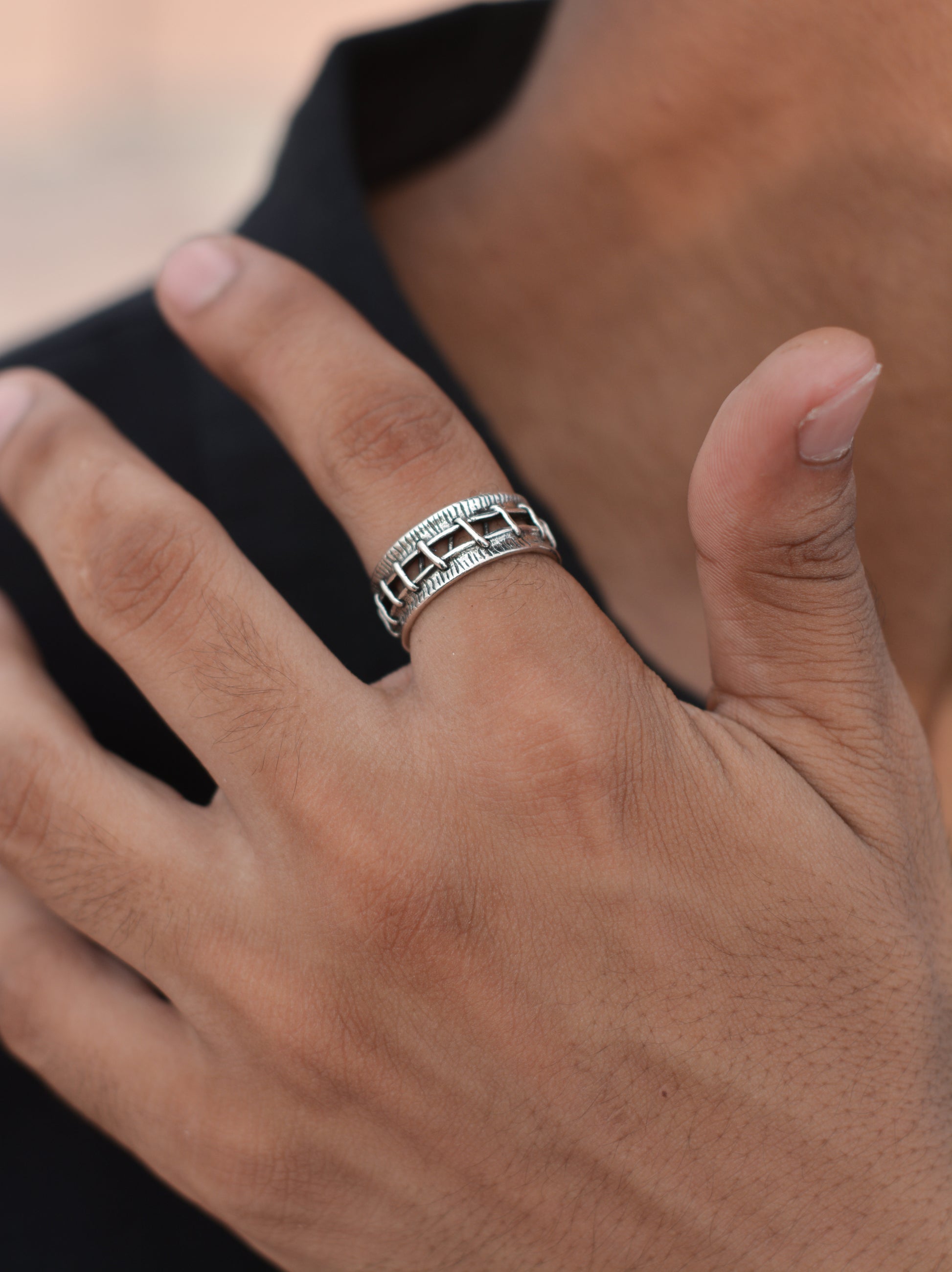 Introducing the Vintage Laced Elegance Adjustable - a ring that exudes old-world charm with a modern twist. This piece features an intricate lace-like pattern etched into its oxidized silver band, creating a stunning contrast with the gleaming silver inlay. The detailed craftsmanship and unique design make it not just a piece of jewelry but a wearable work of art.