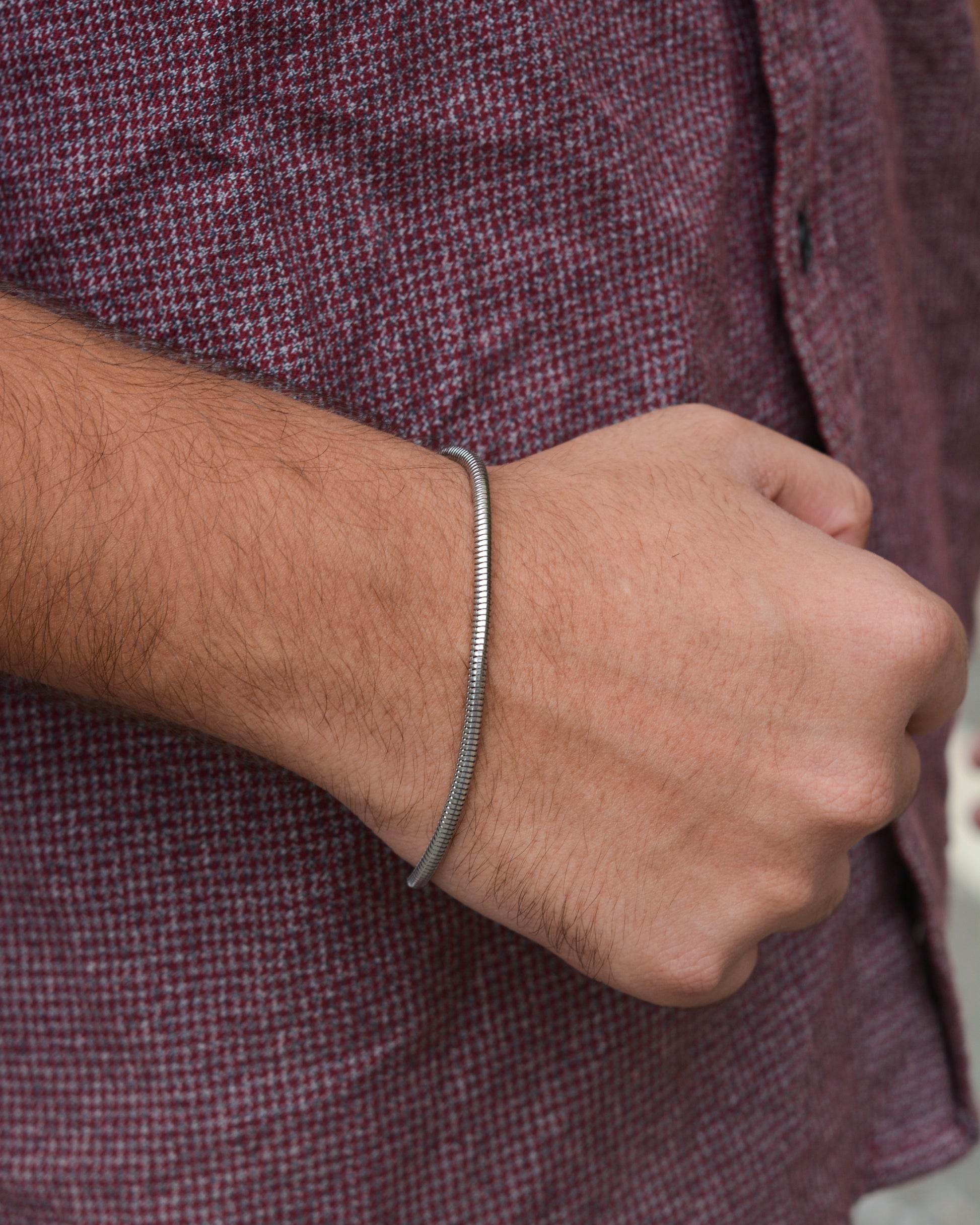 Meet the Whispercoil Bracelet — a fluid symphony of silver that wraps your wrist in quiet elegance.A subtle clasp secures its charm, while its polished finish catches every glimmer of light.