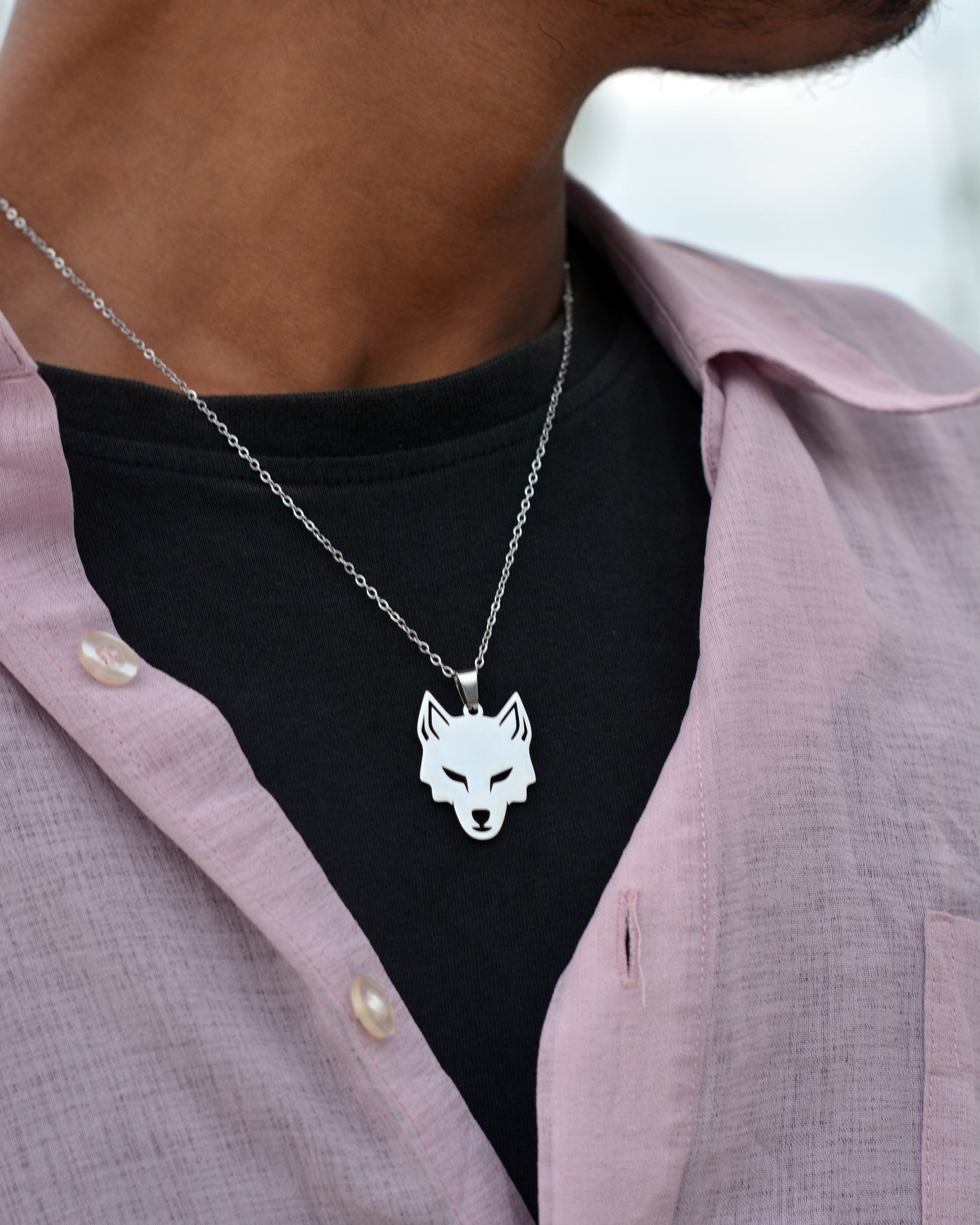 This is Men's Wolf Head Pendant Necklace. The wolf, an emblem of strength and loyalty, adds a touch of wildness and adventure to your style. The necklace comes with a Adjustable chain, designed to rest comfortably around your neck.